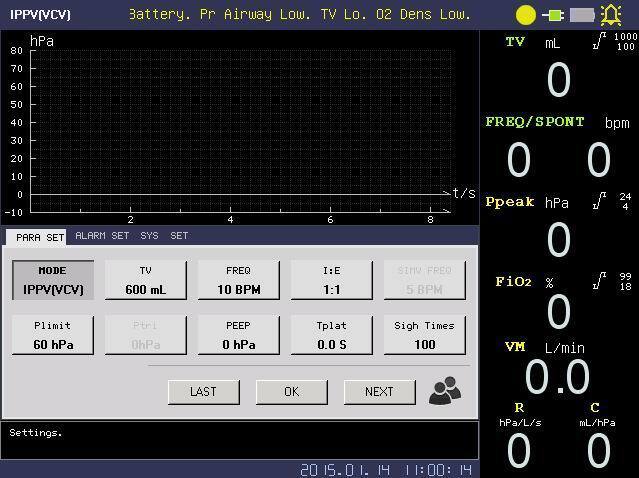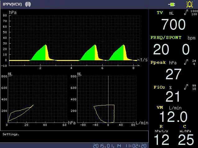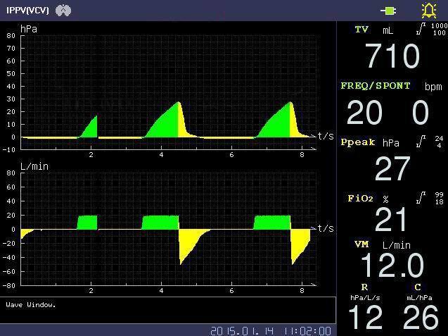 6. Tidal Volume: Adjustable range: 20 ~ 1500 ml, Display range:0~2000ml
