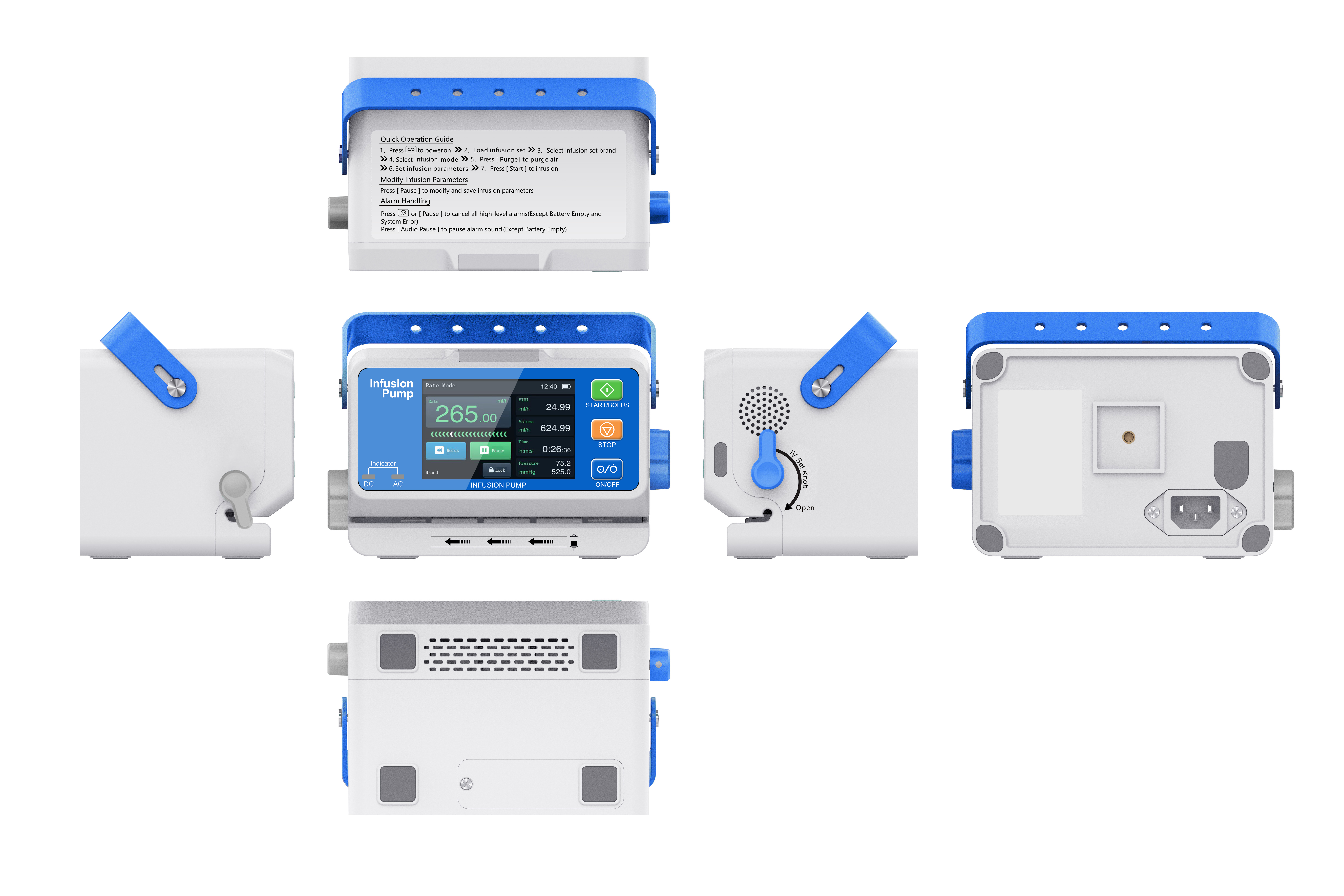 5. Unique doorless design, visible place the IV set directly, convenient and quick. Dual CPU control.