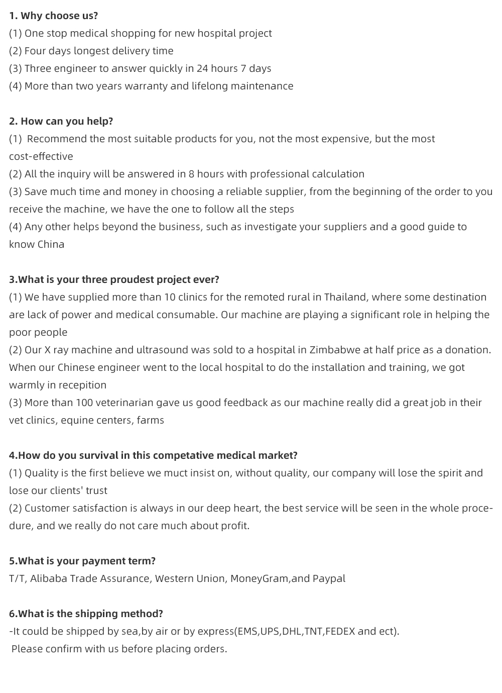 Packing Size of set 2090*1100*430mm (1 set per carton)